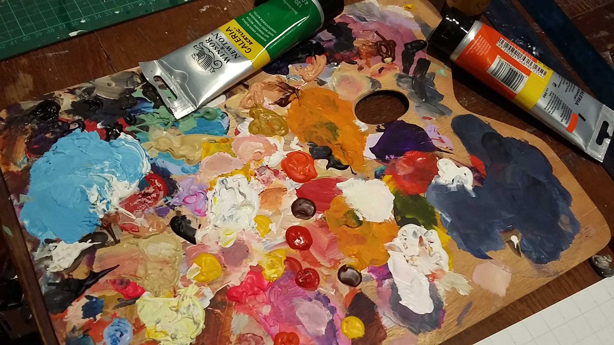 Today I will be spending time working on an acrylic painting. Visitors will be welcome to ask me questions about the process, the materials I use and how I achieve particular effects. It’s a low key, unstructured day and good for people who are interested in finding a little more about what happens ‘behind the scenes’ and chat generally about art! No need to book.